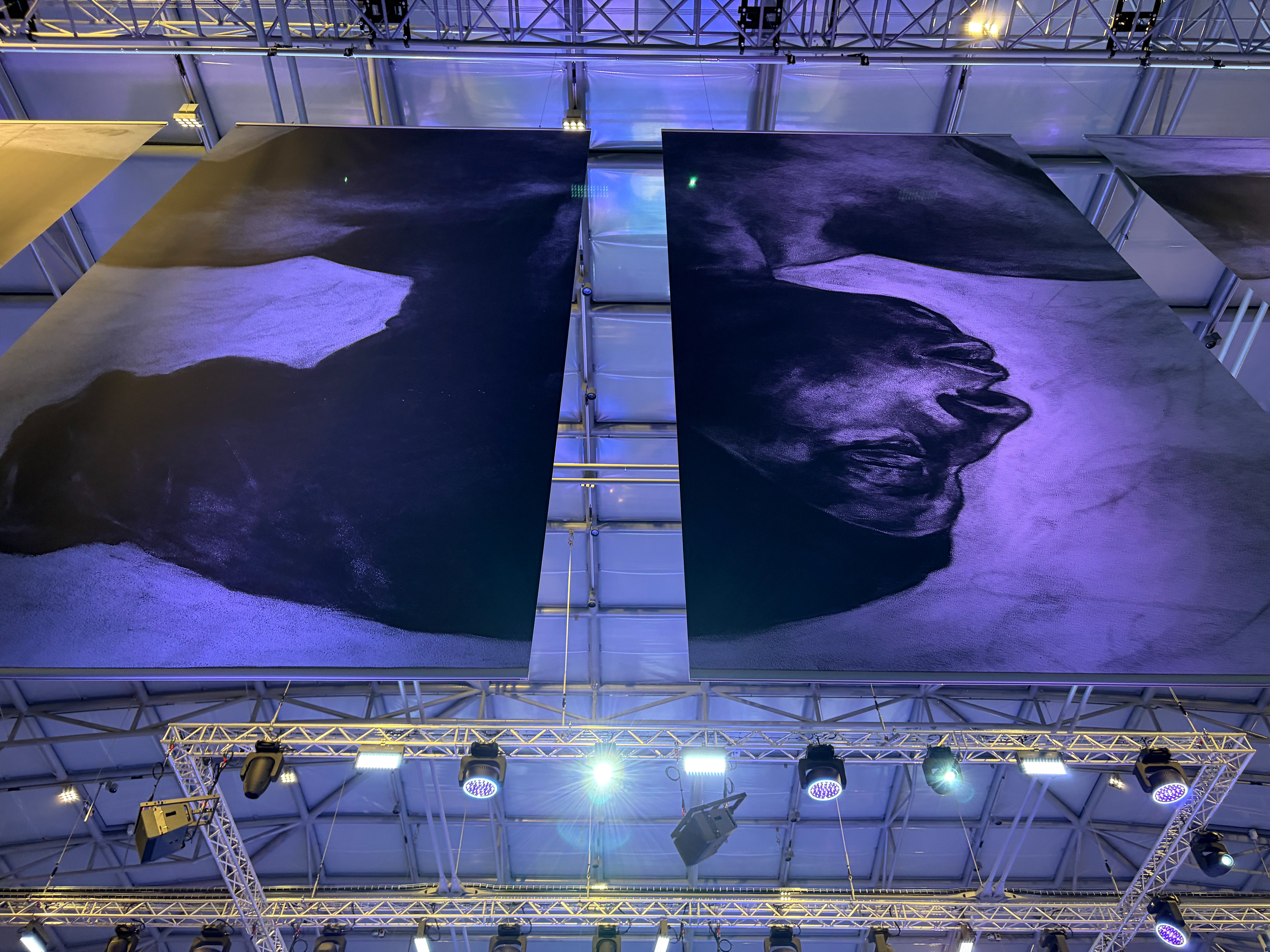 © Images top: © EVEWRIGHT. Banner section Height 400 x Width 400cm. Materials: fabric. Artwork Title: