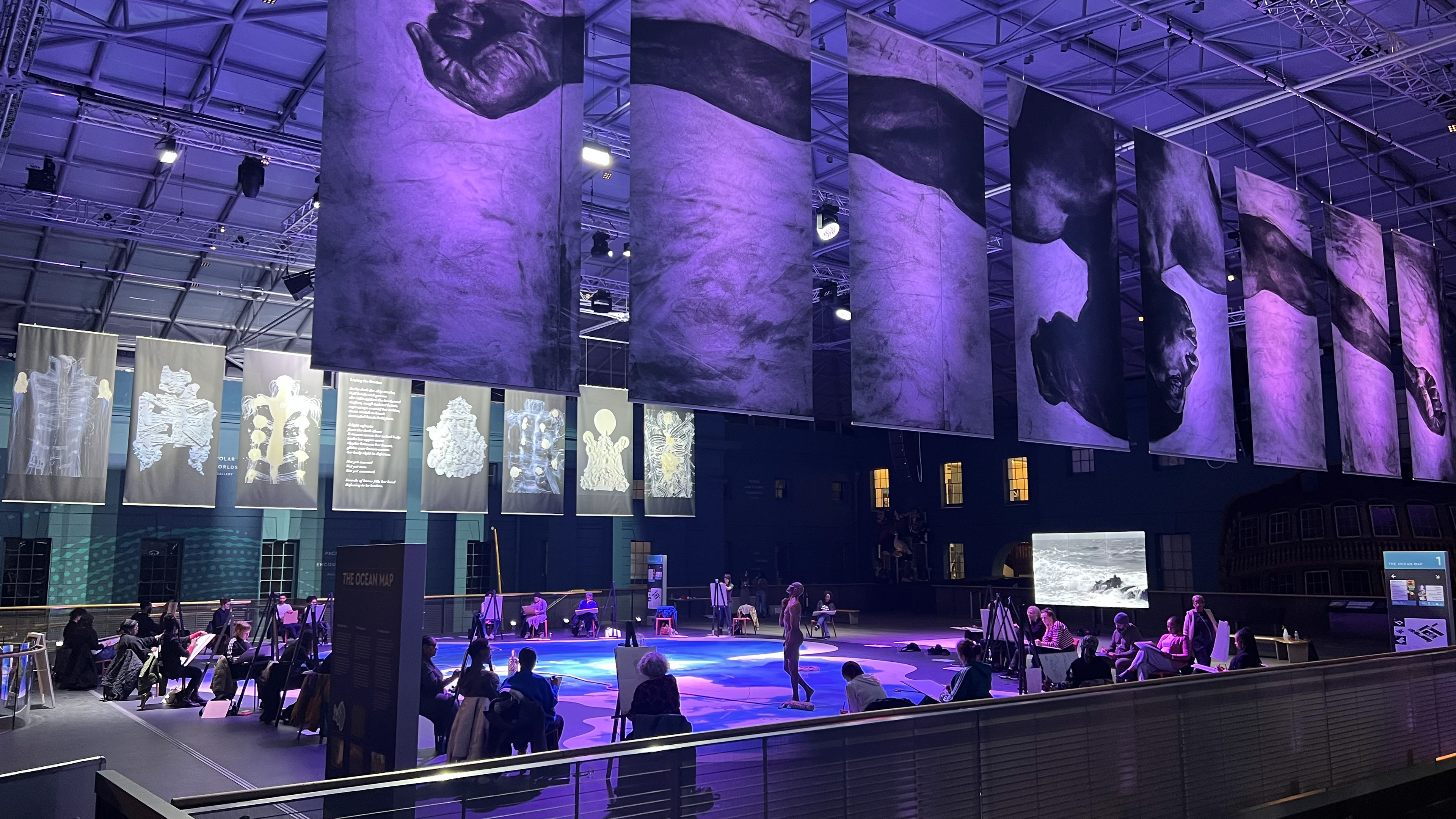 © 2026 Images Above: EVEWRIGHT, Unbroken. Life Drawing the Black Body. Evewright Studio all rights reserved. © 2026 Images Below: EVEWRIGHT, Unbroken art installation views featuring © Film Unbroken: The Ocean’s Response. Featuring Poem ‘Ocean’ and the voice of author Ionie Richards, a re-imagined survivor that climbed back on board the slave ship the Zong. © Photography Jonny Guardiani. Royal Museums Greenwich and Evewright Studio all rights reserved 2026.